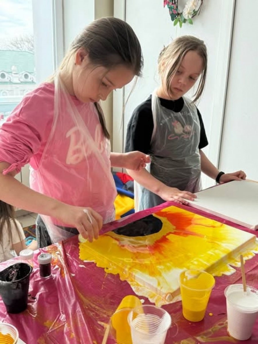 Творча майстерню з флюїд-арту відбулася у центрі підтримки вимушених переселенців «ЯМаріуполь. Кропивницький» у суботу, 25 квітня.