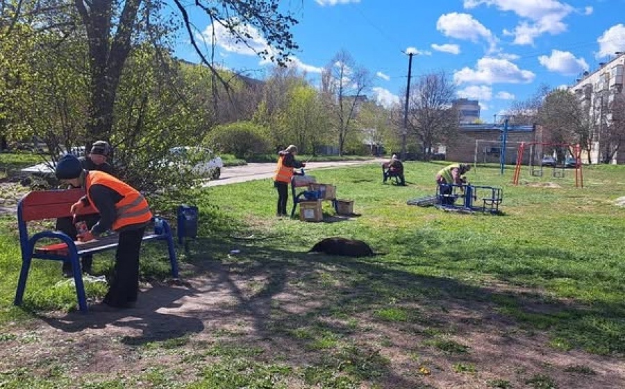 Сьогодні, 30 квітня, працівники старостату спільно з фахівцями керуючої компанії ТОВ «Гудекс ВПС» та комунального підприємства «Благоустрій» навели тут лад, пофарбували ігрові елементи, лавки і конструкції майданчика.
