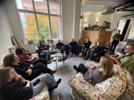День четвертий: спільнота, сила і взаємопідтримка День розпочався у просторі Art Space in Exile (Hotel Continental), який став символічним місцем зустрічі для тих, хто опинився далеко від дому, але не втратив зв’язку з Україною. Тут учасниці спілкувалися з Олександрою Біенерт, правозахисницею та головою правління Альянсу українських організацій у Німеччині.