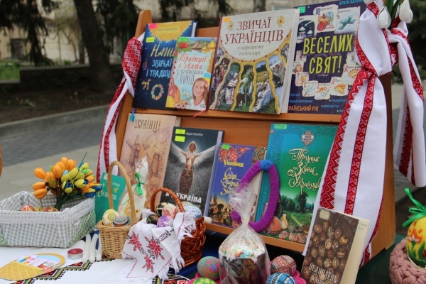 У головному холі книгозбірні для гостей створили особливу атмосферу. Тут розгорнута святкова книжкова експозиція та працює великодня фотозона, над якою натхненно чаклували бібліотекарки.