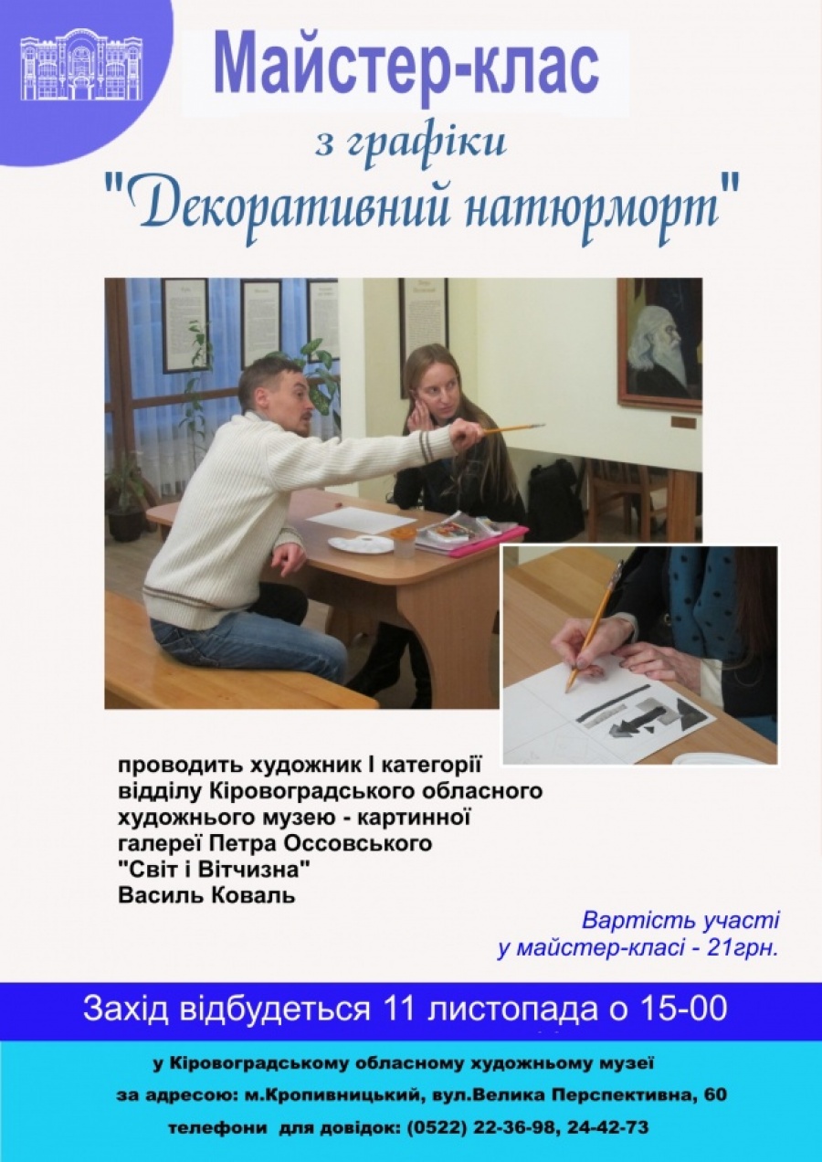 11 листопада 2016 року о 15.00 буде проведено майстер-клас із графіки «Декоративний натюрморт».