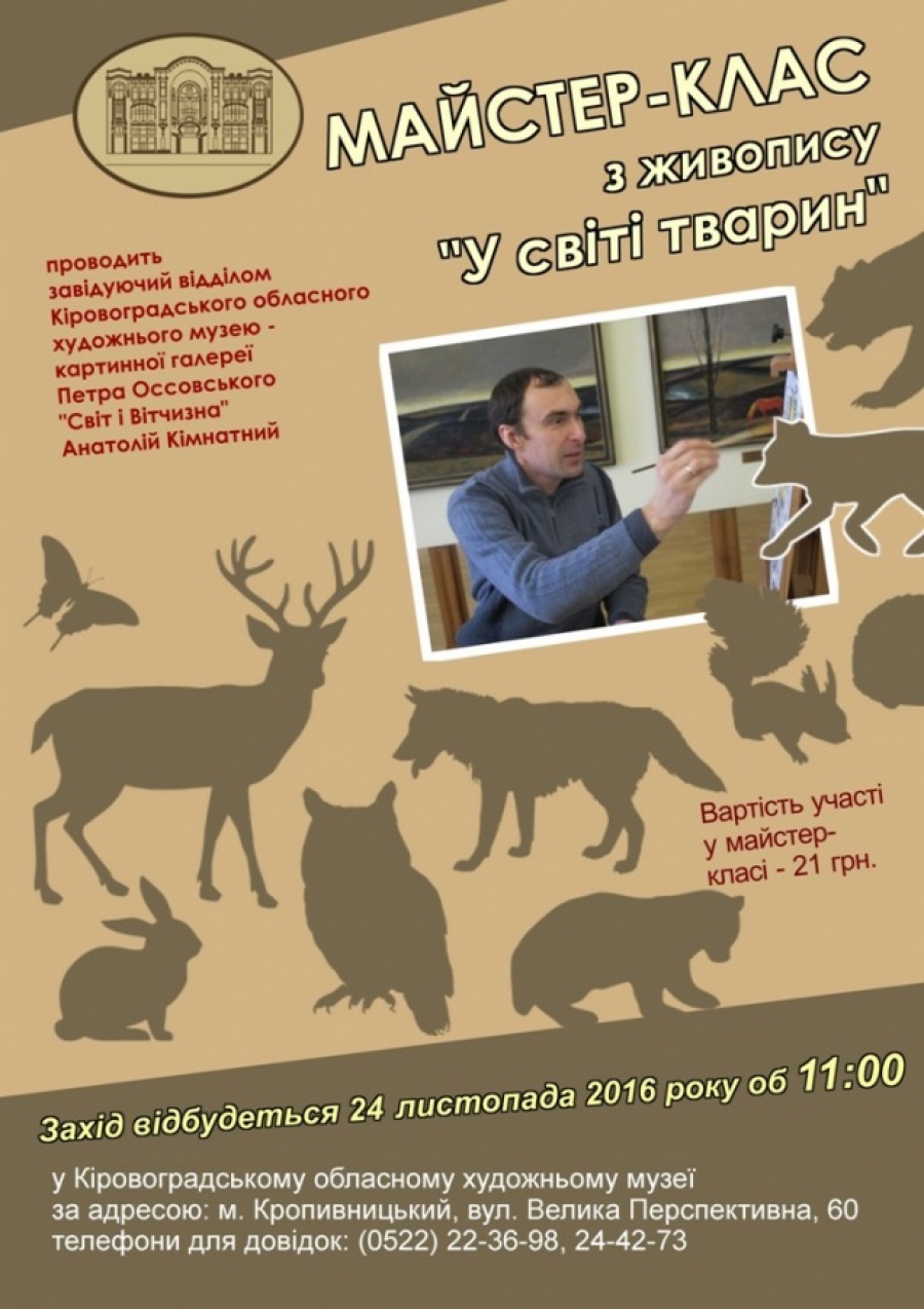 24 листопада 2016 року об 11.00 буде проведено майстер-клас із живопису «У світі тварин»