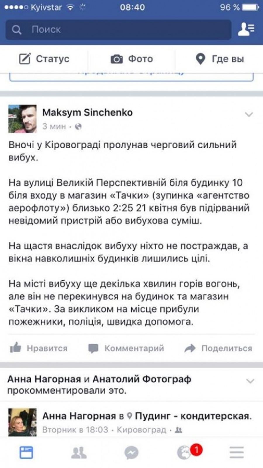 "Вночі у Кіровограді пролунав черговий сильний вибух.