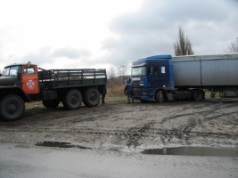 Рятувальники 11-ї та 12-ї Державних пожежно-рятувальних частин м. Олександрії за допомогою буксирувального троса та жорсткого зчеплення здійснили буксирування вантажівки.