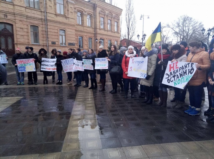 Сьогодні, 20 грудня, на центральній площі педуніверситету, біля пам'ятника В. Винниченку, студенти та всі небайдужі зібралися, щоб висловити своє незадоволення щодо звуження прав студентів в питанні стипендіального забезпечення та зняти відео-звернення до президента України.