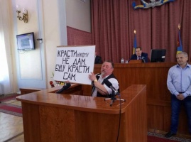 Після виступів громадськості, слово попросив депутат міської ради від «Самопомочі» Володимир Смірнов. Проте, міський голова відмовився надавати йому слово і вклюсчати мікрофон. Це викликало обурення у депутатів, так званої, демократичної опозиції та представників громадськості.