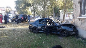 В результаті зіткнення BMW кинуло на узбіччя, а після того в кут будинку. Автомобіль SUZUKI Grand Vitara також розвернуло та відкинуло на узбіччя.
