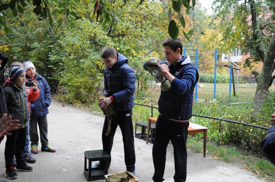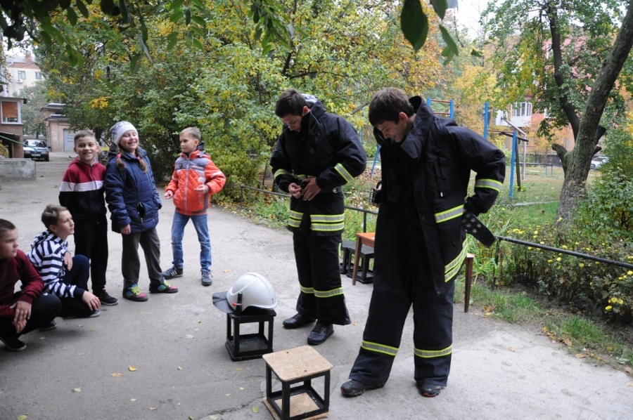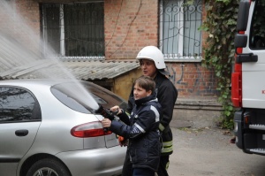 Завжди цікаво дітям спостерігати, як рятувальник демонструє роботу ручного ствола, а особливо – коли можна самому спробувати загасити уявну пожежу. Та найбільше захопила майбутніх зірок спорту можливість позмагатись на швидкість одягання протигазу і комплекту бойового одягу рятувальників.