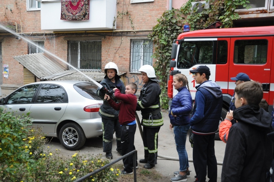 Сценарій заходу насичений та видовищний: рятувальники прибули на майданчик спортшколи на великому пожежно-рятувальному автомобілі «MAN», що не так давно поповнив парк автомобільної техніки 1-го Державного пожежно-рятувального загону м. Кропивницький. Цей автомобіль викликав справжнє захоплення у дітей, особливо тому, що рятувальники дозволили усім бажаючим посидіти в кабіні та розгледіти його оснащення. Далі за планом – тренувальна евакуація із приміщення умовно потерпілих. Це проводиться для того, щоб у разі реальної загрози діти та викладачі знали, як діяти в таких умовах та не панікували.