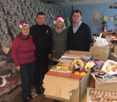 27 грудня поліцейські разом із волонтерами сформували та направили посилку з продуктами харчування у зону АТО. Там нині несе службу на посаді керівника блокпосту у Донецькій області уродженець Петрівського району, колишній працівник міліції Сергій Савченко.