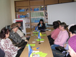 До проведення профінформаційного семінару «Запобігання нелегальній трудовій міграції, торгівлі людьми, експлуатації дитячої праці»було запрошено бібліотекаря центральної районної бібліотеки для дорослих Олену Волкотруб. Під час семінару, запрошені безробітні брали активну участьувиконанні вправ «Айсберг», «Плями на сонці» та «Сонечко»,за допомогою яких учасниці заходу розкрили суть поняття «торгівля людьми», акцентуючи увагу на масштабності поширення даного явища у світі, оперуючи експертними оцінками деяких міжнародних організацій.