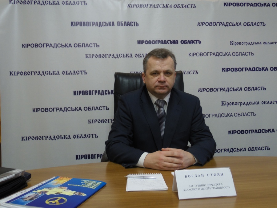 директора Кіровоградського обласного центру зайнятості Богдан Стоян - повідомляє Катерина Білоконь, провідний фахівець із зв'язків з громадськістю та пресою Кіровоградського обласного центру зайнятості.