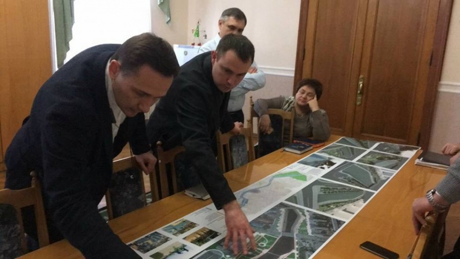 мережі фейсбук: "У понеділок, спільно з заступником міського голови Олександром Мосіним, головним архітектором Вадимом Мездріним, радником мера Євгенією Шустер та членом міськвиконкому Олександром Дануцою провели робочу нараду щодо реконструкції нашої набережної.