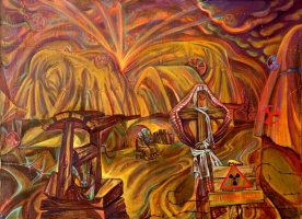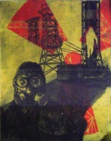 Своєрідним віддзеркаленням проблеми впливу мутаційних процесів на людину можна вважати картину художника Володимира Товкайла (1966 р.н.) «Жінка в червоному» (1990), яка в черговий раз змушує замислитись над нашими перспективами.