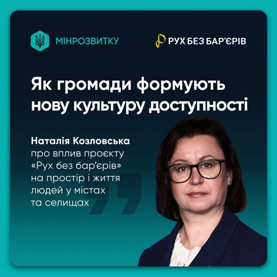 "Рух без бар’єрів": як громади формують нову культуру доступності»: авторська колонка Наталії Козловської про те, чому справжня безбар’єрність - це не лише про окремі об’єкти, а про цілісні маршрути.