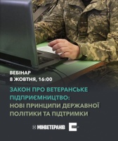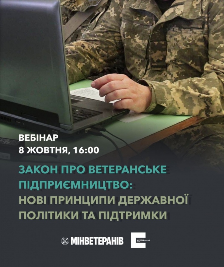 Про нові принципи державної політики та підтримки для ветеранів і ветеранок у сфері бізнесу розповість експертка Українського ветеранського фонду під час вебінару, що відбудеться 8 жовтня о 16:00.