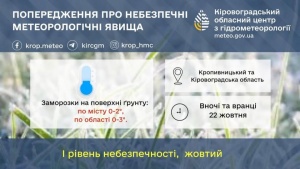 Вночі та вранці 22 жовтня очікуються місцями заморозки на поверхні ґрунту по області 0-3°, по місту 0-2°.