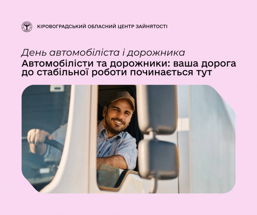 З нагоди професійного свята Кіровоградський обласний центр зайнятості підготував добірку актуальних вакансій для тих, хто прагне реалізувати себе усфері автомобільного транспорту і дорожнього господарства.