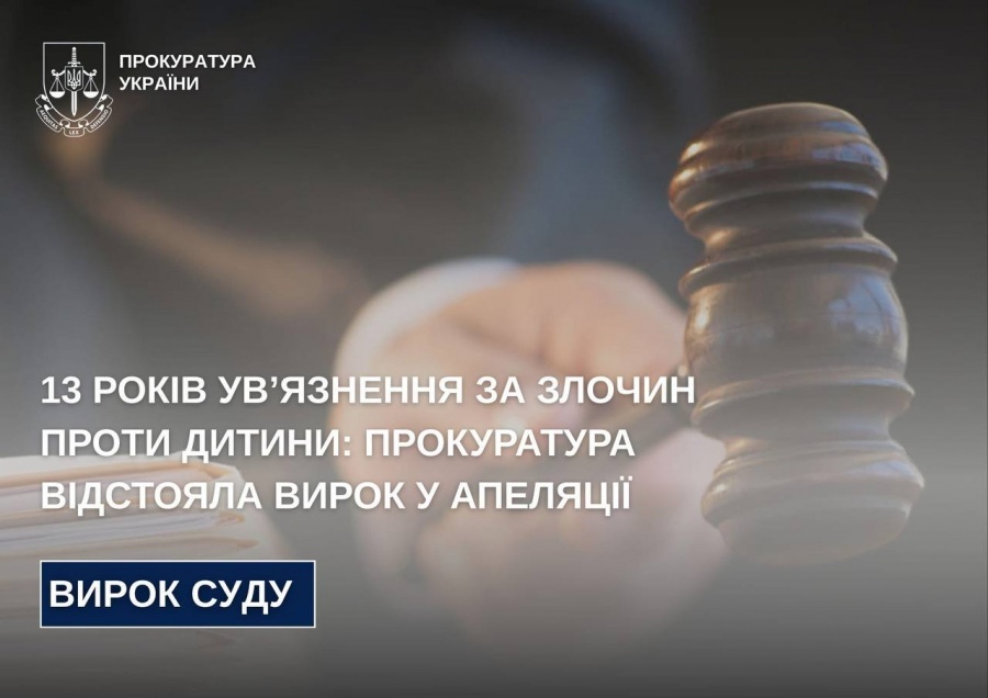 Кропивницький апеляційний суд підтримав позицію прокурорів та залишив без змін вирок суду першої інстанції, яким 48-річного жителя Кіровоградщини засуджено до 13 років позбавлення волі за злочин проти статевої недоторканості малолітньої (ч. 4 ст. 152 КК України).