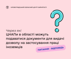 Нагадаємо, що відповідно до статті 42 Закону України “Про зайнятість населення” роботодавці мають право на застосування праці іноземців та осіб без громадянства на території України на підставі дозволу, що видається територіальними органами центрального органу виконавчої влади, що реалізує державну політику у сфері зайнятості населення та трудової міграції. Таким територіальним органом в Кіровоградській області наразі є Кіровоградський обласний центр зайнятості.