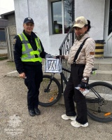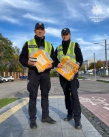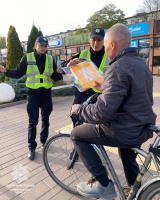 Окрім важливих настанов з правил дорожнього руху, наші інспектори подарували велосипедистам спеціальні світлоповертальні жилети, які відбивають світло у темряві.