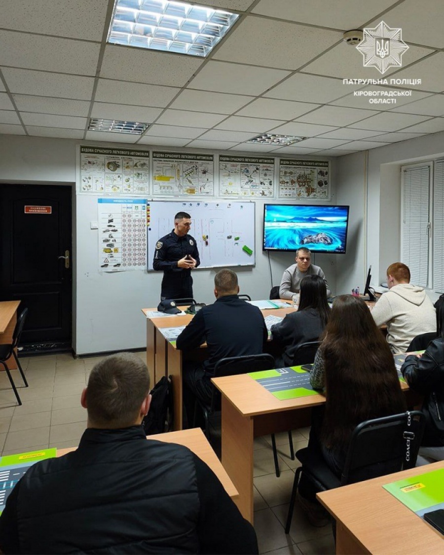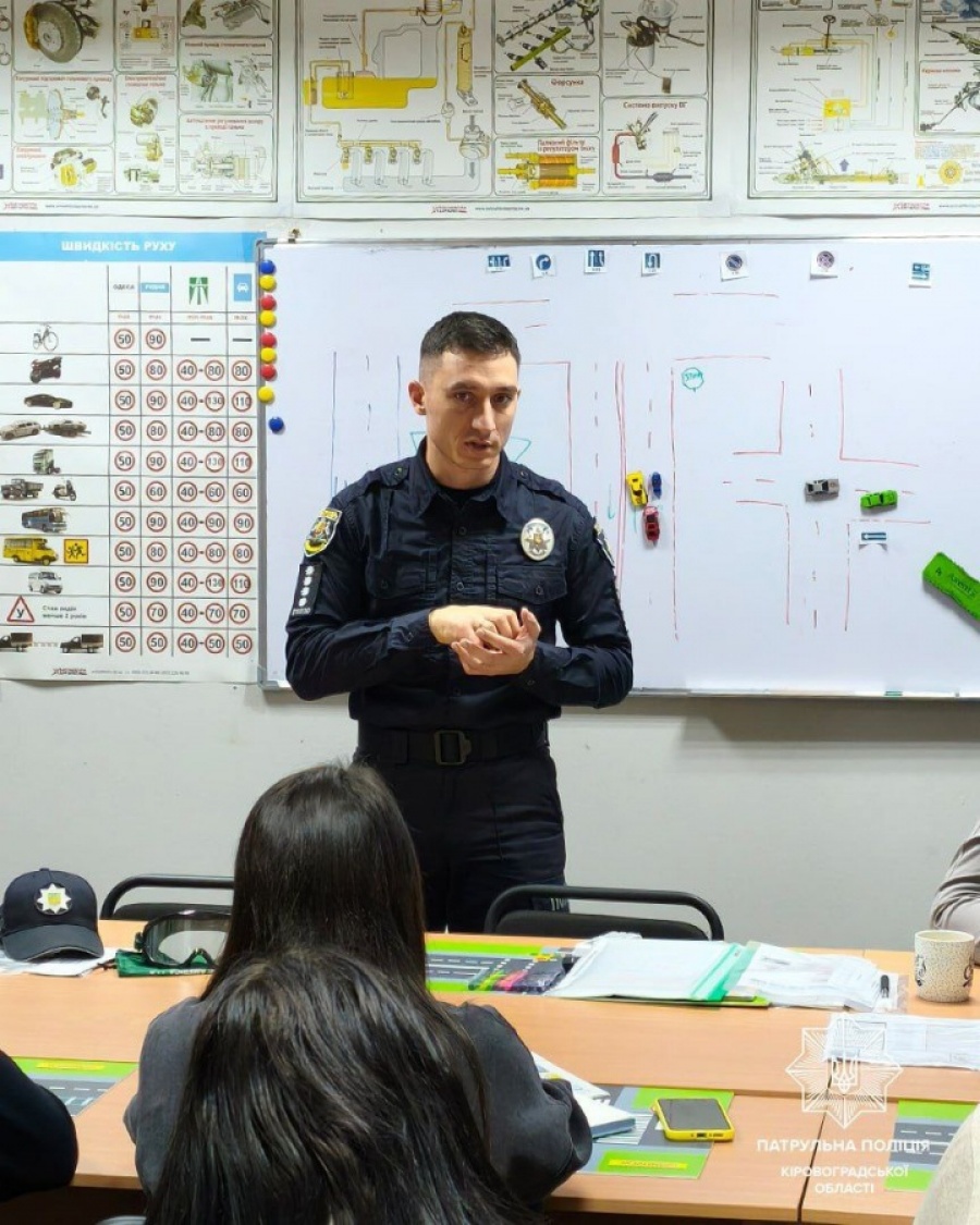 Працівники Патрульної поліції Кіровоградської області продовжують говорити про безпеку на дорозі з майбутніми водіями. Цього разу наш поліцейський відділу зв’язків з громадськістю нагадав слухачам однієї з автошкіл міста про те, як важливо дотримуватися правил дорожнього руху.