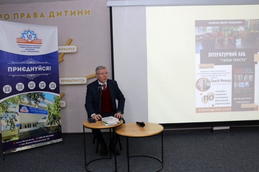 У Кіровоградській обласній універсальній науковій бібліотеці ім. Д. Чижевського відкрили новий культурно-освітній простір – літературний хаб «Таїна тексту». Він має стати центром зустрічей письменників, читачів, дослідників і всіх, хто любить художнє слово.