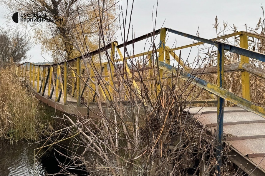 У Кропивницькому руйнується пішохідний міст через річку Інгул. Він з’єднує мікрорайони Стара Балашівка та Лелеківка. Металеві поручні на ньому не тримаються, конструкція просідає. Три роки тому міст обіцяли полагодити й нічого не зробили.
