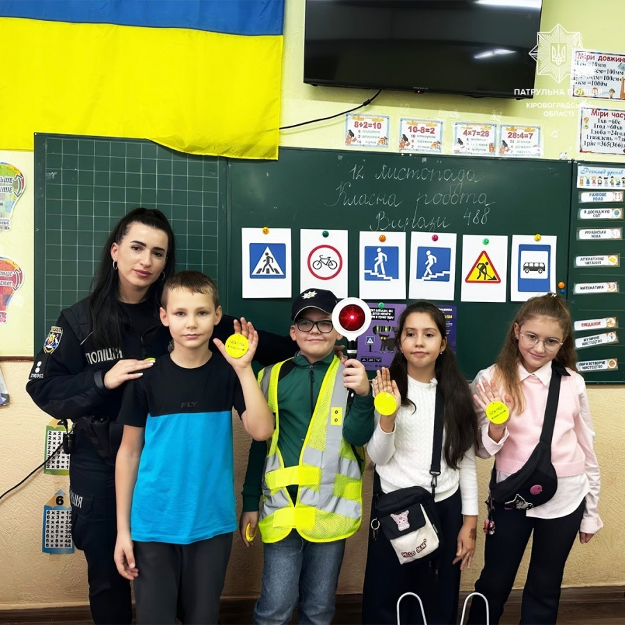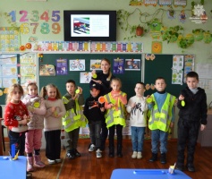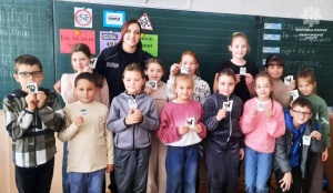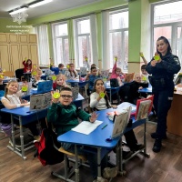 Цього разу інспектори нагадали учням про те, як важливо дотримуватися правил дорожнього руху. Розповіли, що означають сигнали регулювальника, та як правильно переходити дорогу.