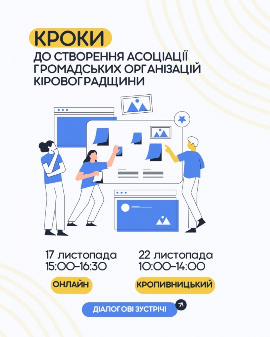 Запрошуємо представників та представниць громадських об’єднань Кіровоградщини приєднатися до діалогових зустрічей — чергових кроків у створенні Асоціації ОГС Кіровоградщини.