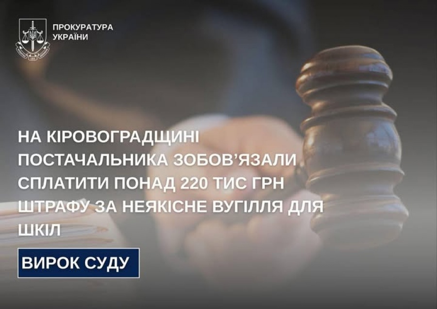Господарський суд Запорізької області задовольнив позов Знам’янської окружної прокуратури та зобов’язав постачальника вугілля сплатити до бюджету понад 220 тисяч гривень штрафних санкцій за поставку неякісного палива для закладів освіти.