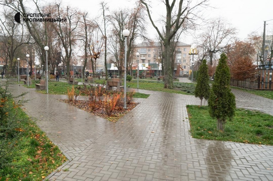 Ділянку реконструйованого 2023 року скверу у центрі Кропивницького з деревами та кущами планували передати на баланс комунального підприємства "Благоустрій" не пізніше червня 2024 року. Про це Суспільному у травні 2024-го розповідав керівник підприємства "Укрсфера", що займалося реконструкцією скверу з лютого по листопад 2023 року, Дмитро Костишин.
