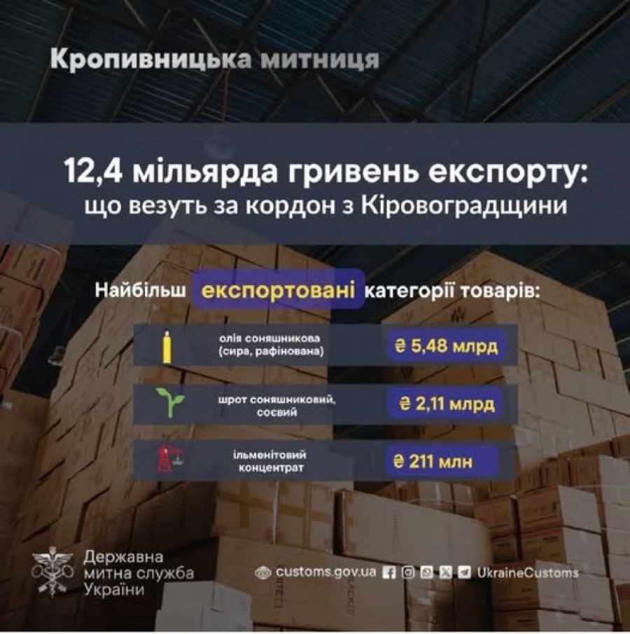 За десять місяців 2025 року підприємства Кіровоградської області експортували товарів на понад 12,4 млрд грн. Про це повідимила прес-служба Кіровоградської митниці.
