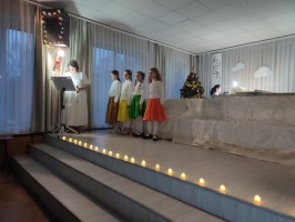 Попри відключення електропостачання, дійство все ж відбулося! Атмосфера була камерною, домашньою і по-справжньому об’єднувала. Діти представили невеличкий спектакль про дружбу, взаємодопомогу та цінність людського тепла. Головними героїнями виступили чарівні "хмаринки" — Ксенія Сагун та Злата Олійник, які допомогли глядачам поринути у світ добрих вчинків та щирих почуттів.