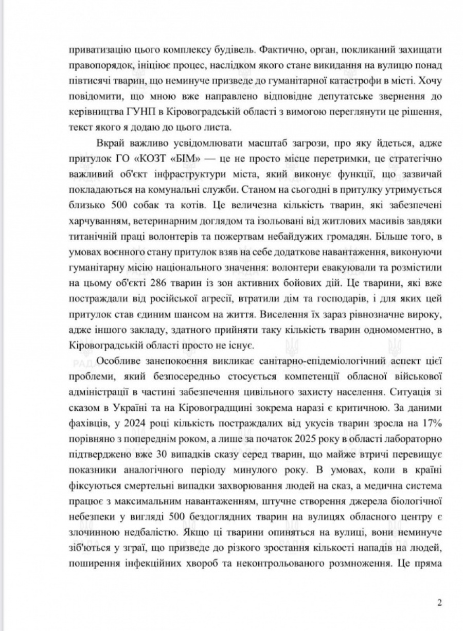За моєю інформацією кількість звернень до органів місцевого самоврядування, поліції, медичних установ, збільшилась кратно. Якщо ви сьогодні закриєте притулок «БІМ», то ті люди, які щодня опікуються щонайменше пів тисячою тварин будуть змушені відкрити вольєри і ця кількість тварин просто потрапить на вулиці міста.