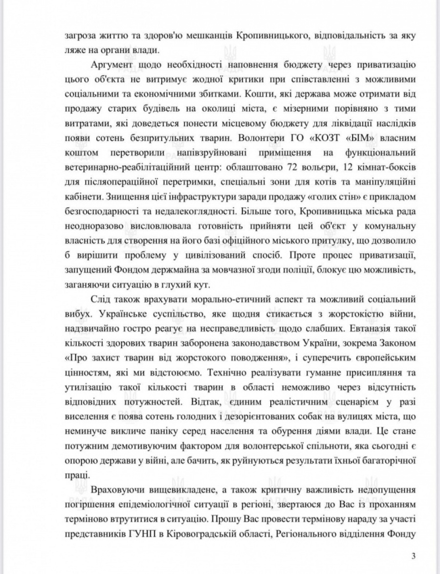 Ще раз звертаючись до місцевої влади хочу зауважити, що виганяючи притулок, ви не просто звільняєте приміщення — ви викидаєте сотні тварин на вулицю.