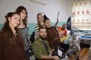 Хлопець соромливо погоджується, а дівчата, перш ніж вручити йому подарунки до Дня Святого Миколая, обступають пораненого військового для фото. Настрій в усіх у палаті злітає миттєво, хлопці сміються і це ознака того, що всі вони скоріше одужають.