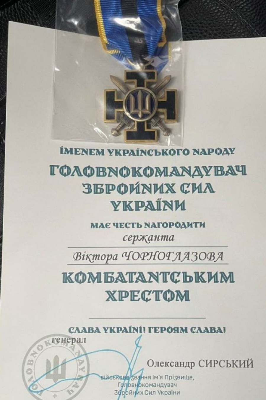 Ветеран Збройних Сил України, директор комунального закладу «Кіровоградський обласний центр науково-технічної творчості учнівської молоді» Віктор Чорноглазов нагороджений нагрудним знаком Головнокомандувача ЗСУ Олександра Сирського «Комбатантський хрест».