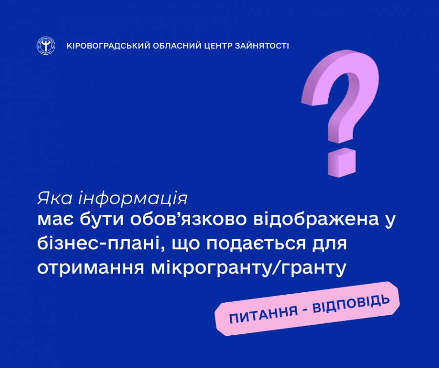 Бізнес-план має містити резюме проекту, загальні відомості про суб’єкта малого (середнього) підприємництва, опис проекту, прогнозований звіт про прибутки та збитки, інвестиційний та кадровий плани, оцінку ризиків, соціально-економічні результати реалізації проекту.