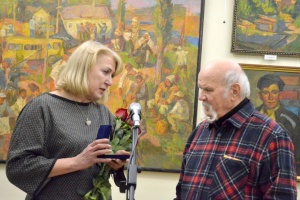 Від імені Кіровоградської обласної ради першого лауреата обласної премії у сфері образотворчого мистецтва та мистецтвознавства з ювілеєм та відкриттям персональної виставки привітала заступниця начальника загального відділу виконавчого апарату облради Ольга Погрібна.