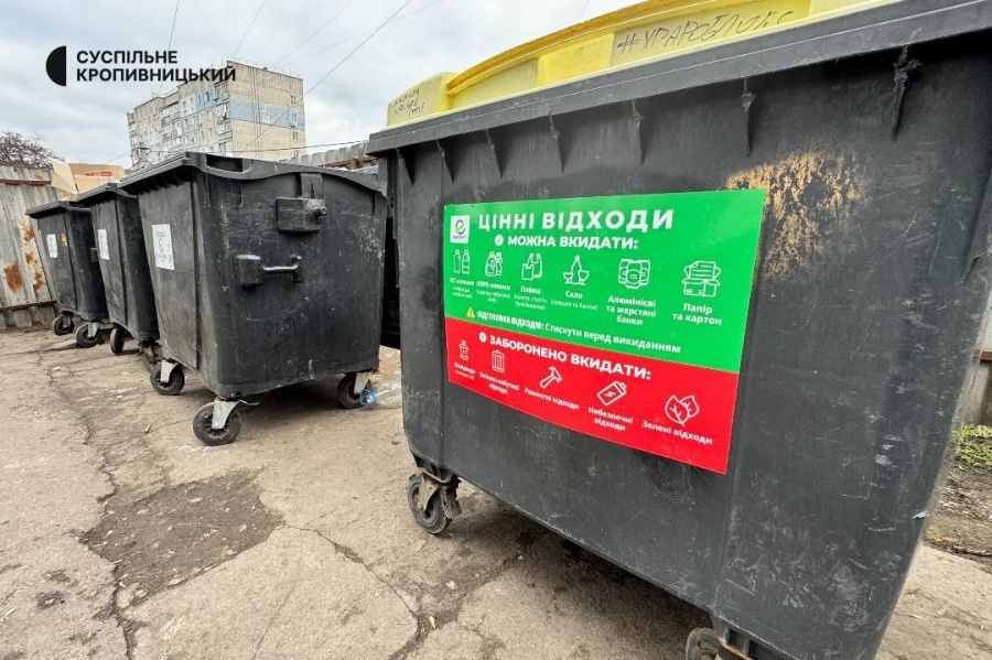 У Кропивницькому встановили контейнери для сухого сміття. Їх розмістили біля багатоповерхівок на 53 майданчиках поруч із контейнерами для змішаних відходів. На сміттєвих баках — напис “Цінні відходи”. Ініціатива — підприємства "Екостайл", яке займається вивезенням сміття.
