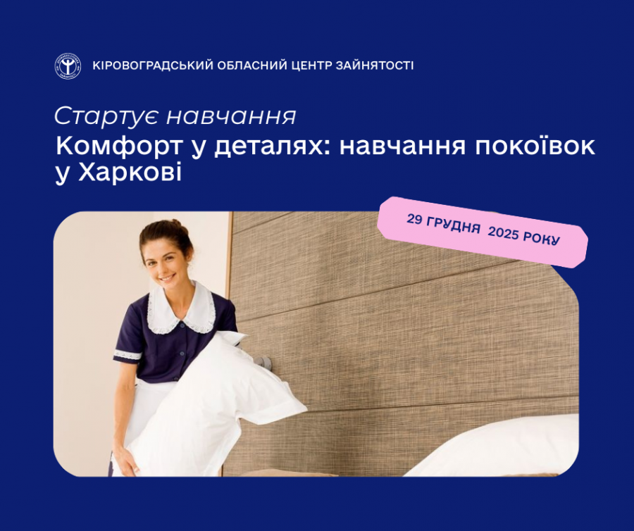Професійне навчання за професією «Покоївка» організовує Харківський центр професійно-технічної освіти Державної служби зайнятості, де ви отримаєте необхідні знання, практичну підготовку та впевнений старт у професії.