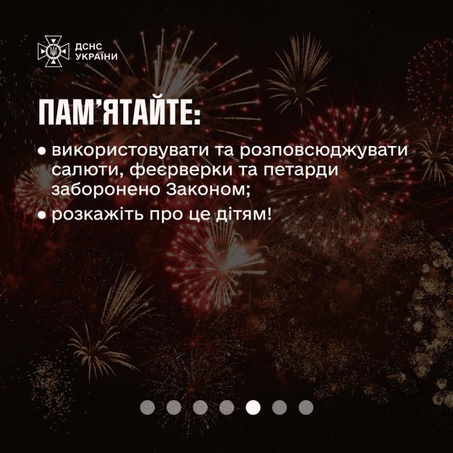 Увага! Нагадуємо про заборону використання піротехнічних виробів в умовах воєнного стану в Україні та закликаємо не залишати дітей без нагляду під час зимових канікул.