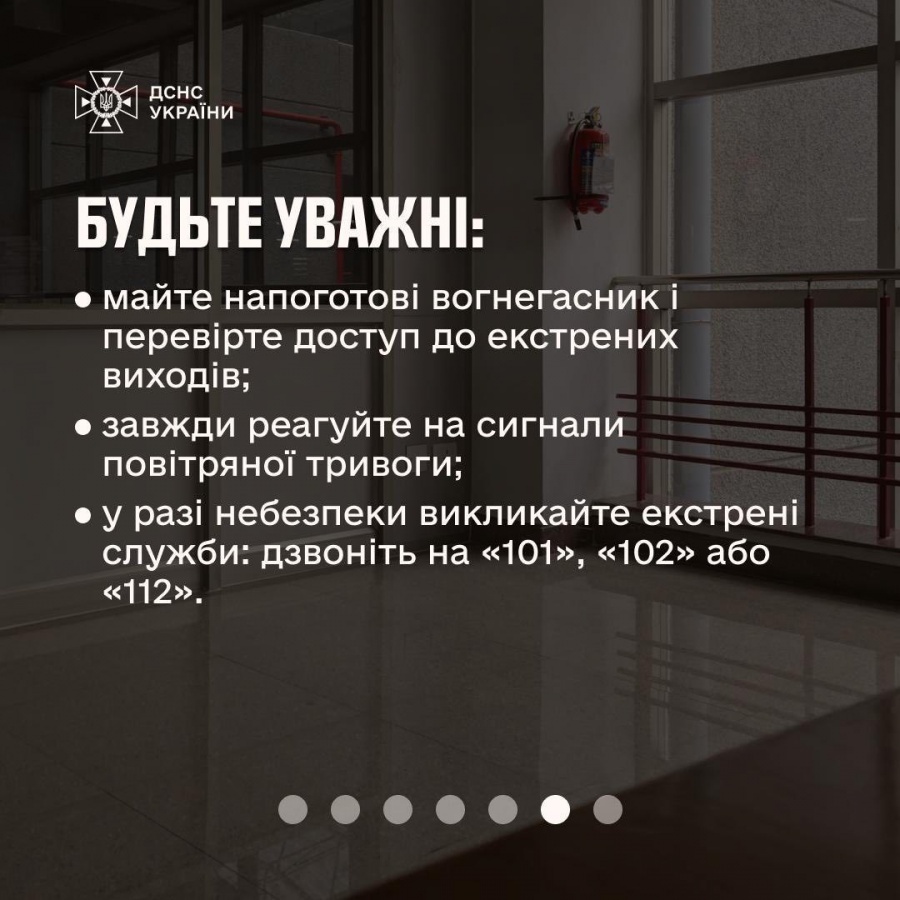 У разі виникнення пожежі - негайно телефонуйте за номером 101.