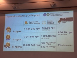 Також змінено розмір військового збору. У 2026 році ФОП першої та другої груп сплачуватимуть 864,70 грн військового збору щомісяця. Для платників третьої групи, як і раніше, військовий збір становить 1% від доходу.