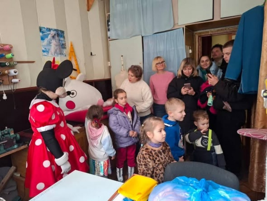 Головна режисерка театру, заслужена артистка України Вікторія Ставріаніді-Стогодюк, разом із театральною лялькою Міккі провела дітей за лаштунки та показала, як створюються вистави.