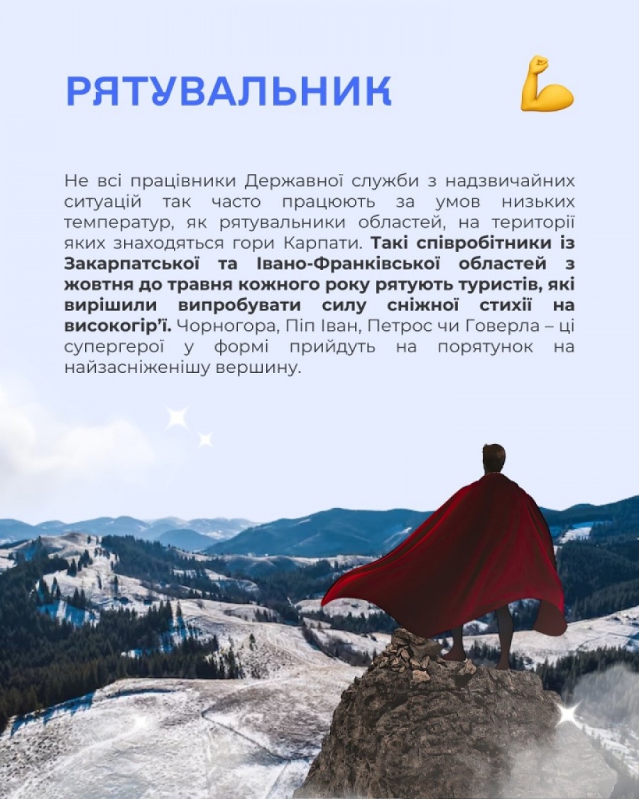 Особливо холодними умовами працюють рятувальники Карпатських регіонів — Закарпаття та Івано-Франківщини. З жовтня до травня вони допомагають туристам, які потрапили у снігову стихію на вершинах Чорногори, Піп Івана, Петроса чи Говерли. Їхня робота – це щоденна боротьба з морозом і небезпекою.