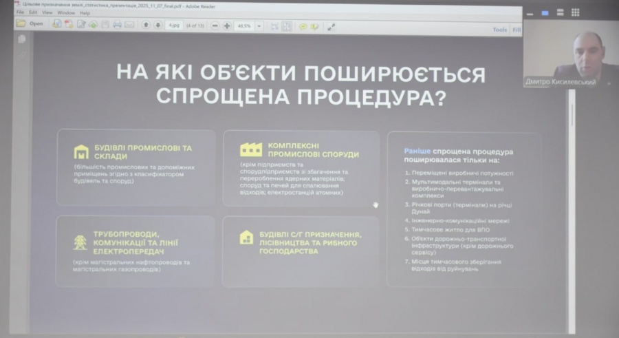 В обласній адміністрації і підбили підсумки роботи за новим законом «Про внесення змін до деяких законодавчих актів України для залучення інвестицій з метою швидкої відбудови України». Він дозволяє змінювати цільове призначення землі швидше, щоб інвестори могли оперативно розпочати відбудову економіки.
