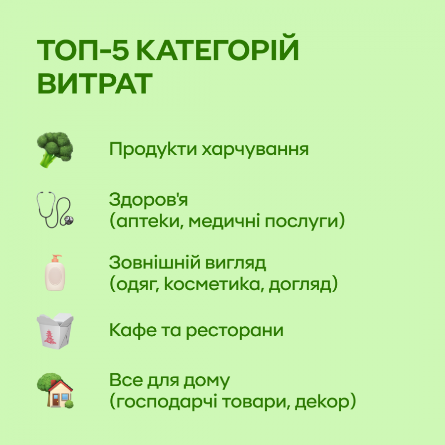 Частка витрат з карток на покупку ліків та товарів для здоровʼя у 2025 в споживчому кошику українця становила 8,4%. Трохи менше - 7,6% від загального обсягу українці витрачали на одяг та взуття, косметику і салони краси 7,2%.