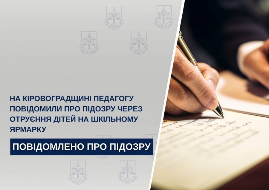 За процесуального керівництва Кропивницької окружної прокуратури повідомлено про підозру педагогу-організатору одного з ліцеїв міста Кропивницького за фактом порушення правил та норм, встановлених з метою запобігання масовим неінфекційним захворюванням (отруєнням) (ч. 1 ст. 325 КК України).